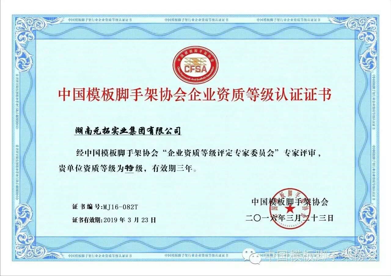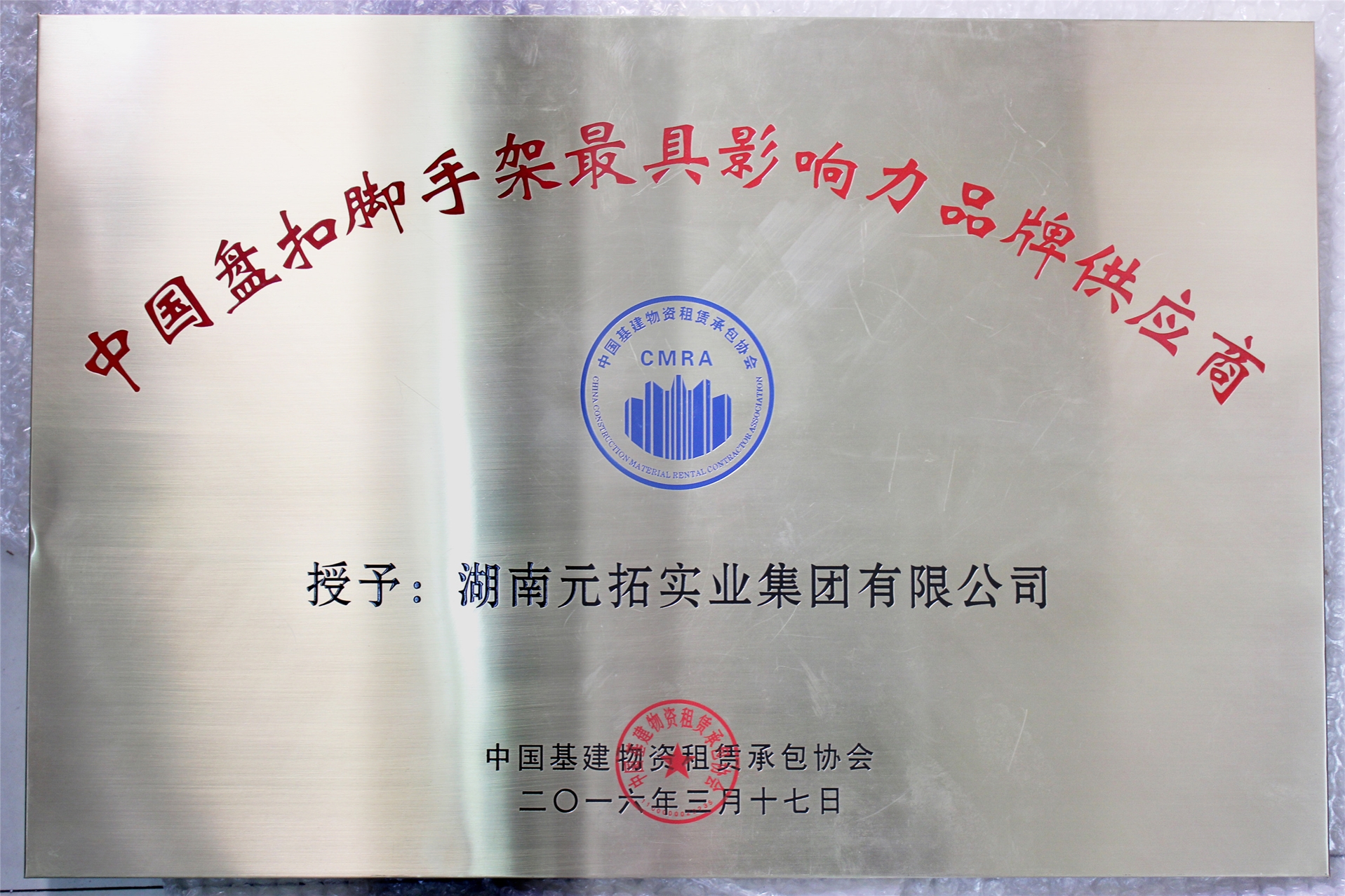 2011年,元拓集團被授予 “全國模板腳手架行業(yè)優(yōu)秀企業(yè)”;2012年,元拓集團榮獲模板腳手架企業(yè)一級資質、元拓熱鍍鋅鋼跳板被評為“全國建筑物資租賃行業(yè)推介產品”;2013年,公司連續(xù)兩年榮獲阿里巴巴“風雨相伴獎”、“千萬網商獎”,并常年被授予“優(yōu)秀企業(yè)”、“先進單位”等榮譽。元拓腳手架,領袖型施工企業(yè)的選擇。 元拓就是家。