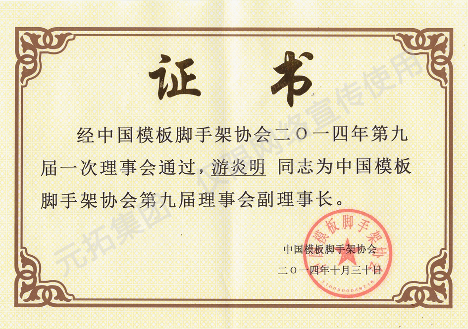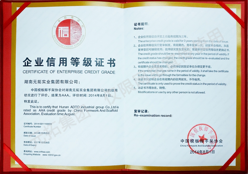 2011年,元拓集團被授予 “全國模板腳手架行業(yè)優(yōu)秀企業(yè)”;2012年,元拓集團榮獲模板腳手架企業(yè)一級資質(zhì)、元拓熱鍍鋅鋼跳板被評為“全國建筑物資租賃行業(yè)推介產(chǎn)品”;2013年,公司連續(xù)兩年榮獲阿里巴巴“風雨相伴獎”、“千萬網(wǎng)商獎”,并常年被授予“優(yōu)秀企業(yè)”、“先進單位”等榮譽。元拓腳手架,領袖型施工企業(yè)的選擇。 元拓就是家。