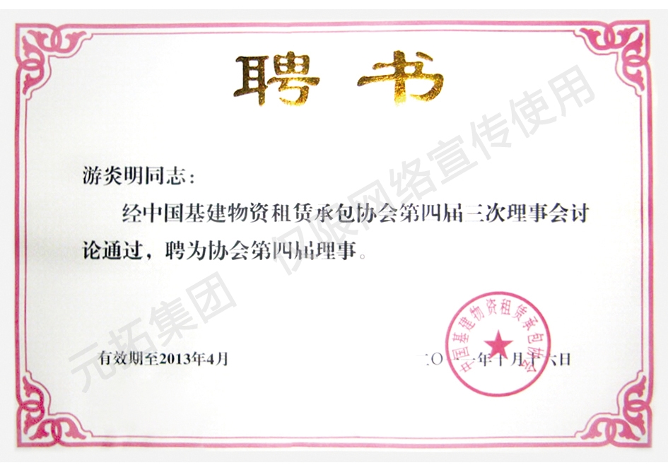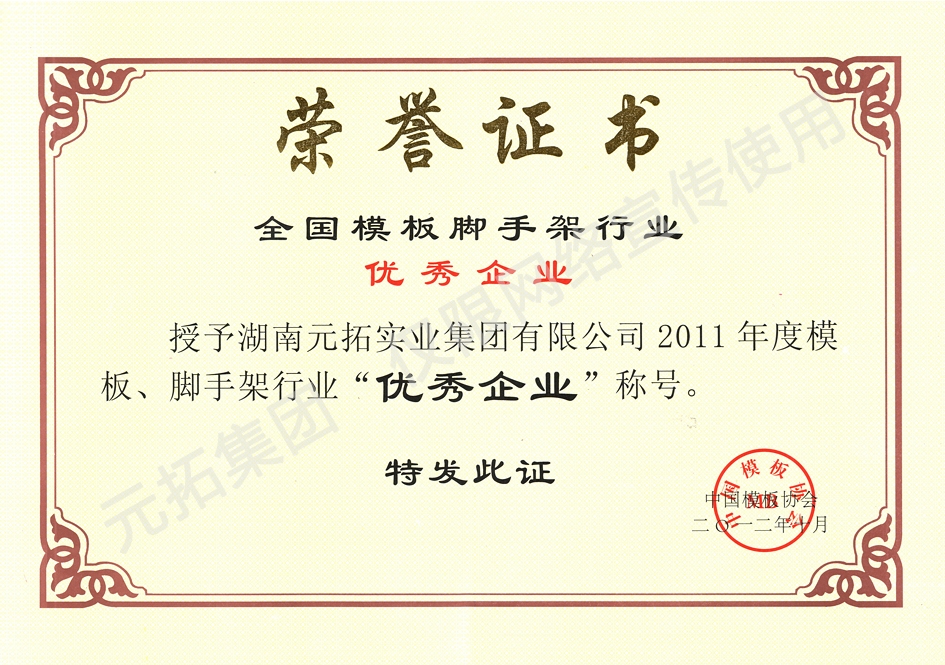 2011年,元拓集團(tuán)被授予 “全國模板腳手架行業(yè)優(yōu)秀企業(yè)”;2012年,元拓集團(tuán)榮獲模板腳手架企業(yè)一級(jí)資質(zhì)、元拓?zé)徨冧\鋼跳板被評(píng)為“全國建筑物資租賃行業(yè)推介產(chǎn)品”;2013年,公司連續(xù)兩年榮獲阿里巴巴“風(fēng)雨相伴獎(jiǎng)”、“千萬網(wǎng)商獎(jiǎng)”,并常年被授予“優(yōu)秀企業(yè)”、“先進(jìn)單位”等榮譽(yù)。元拓腳手架,領(lǐng)袖型施工企業(yè)的選擇。 元拓就是家。