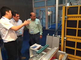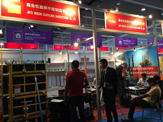 在廣交會(huì)現(xiàn)場(chǎng),來自全球的客戶一進(jìn)入元拓展位都直奔門口的圓盤系統(tǒng),踏上鋼跳板,檢驗(yàn)產(chǎn)品的穩(wěn)定性和安全性,得到的反饋都是:豎起大拇指,連稱good!另外,可調(diào)式柱模、鋁合金模板也成為眾多客戶眼中的“明星”,很多客戶來到組合模板前敲敲打打,現(xiàn)場(chǎng)工作人員在耐心為客戶講解的同時(shí),還會(huì)用專業(yè)的工程錘為客戶展示快捷拆裝的技巧。